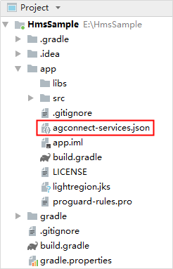 将“agconnect-services.json”文件拷贝到应用级根目录下。
