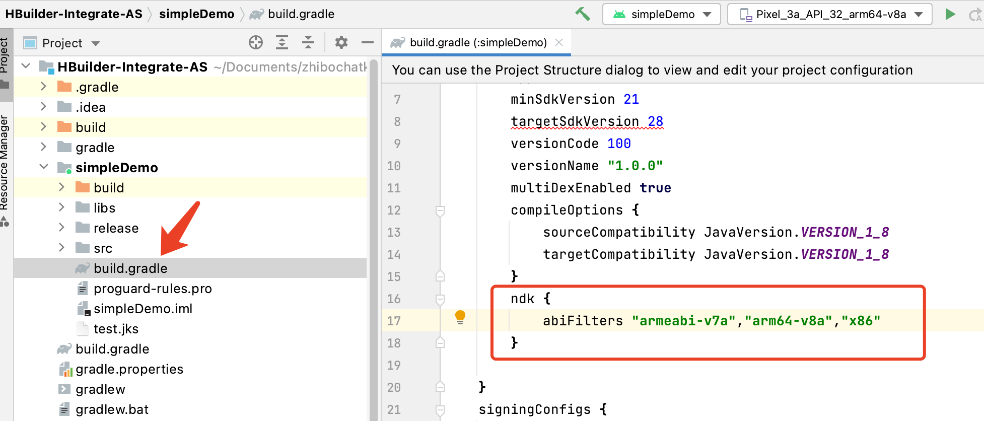 市面上大部分手机用的都是armeabi-v7a,所以我们还可以减少一下体积,只打包armeabi-v7a的